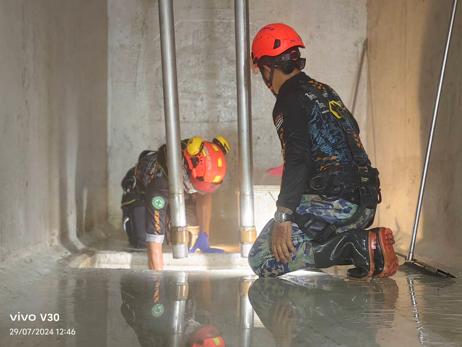 ในกรณีที่เกิดอุบัติเหตุ เช่น การหมดสติของทีมงานในพื้นที่ ควรมีทีมช่วยเหลือที่ได้รับการฝึกฝน พร้อมใช้อุปกรณ์ช่วยชีวิต เช่น รอกกู้ภัย และต้องหลีกเลี่ยงการเข้าไปช่วยโดยไม่มีการป้องกันที่เหมาะสม